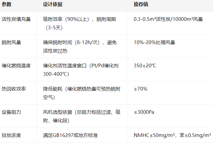 以方案A(活性炭吸附+催化燃燒)為例,關(guān)鍵參數(shù)設(shè)計(jì)如下: