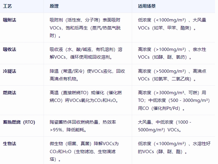 高濃度VOCs:先冷凝回收有機(jī)物(>5000mg/m³),殘余氣再燃燒(TO/RTO)。