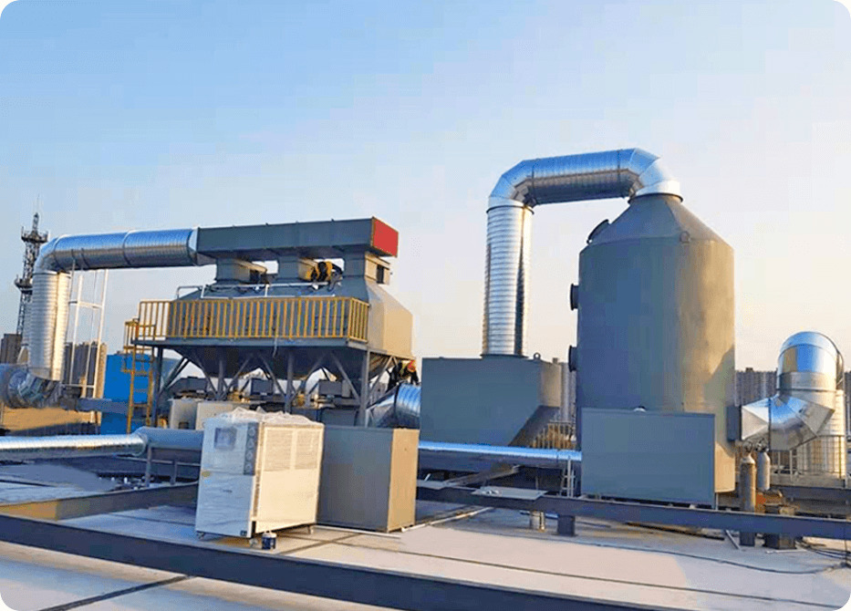 漆霧處理:若廢氣含漆霧(如噴膠工藝),需通過干式過濾(折流板、纖維過濾)或濕式洗滌(水簾、噴淋塔)去除。