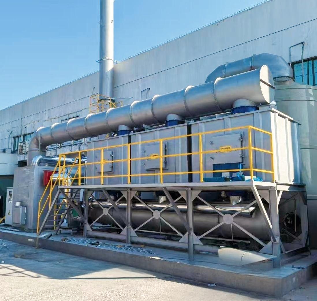 催化燃燒:濃縮后的VOCs進(jìn)入催化燃燒裝置(貴金屬催化劑,如Pt/Pd),在200-400℃下氧化為CO?和H?O,能耗低、無二次污染。