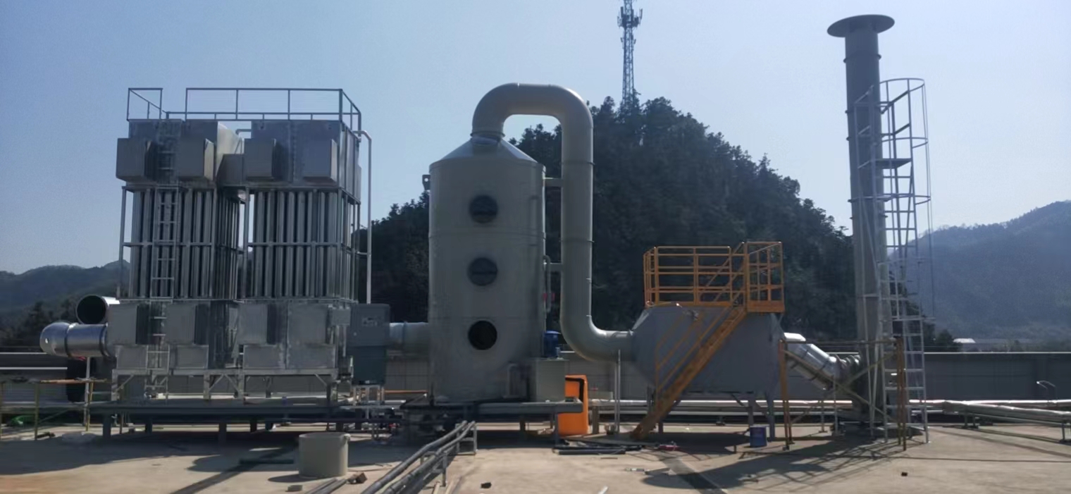 降溫:熱定型機(jī)廢氣需先降溫(150℃→60-80℃),常用換熱器(余熱回收,節(jié)能)或噴淋塔(水噴淋降溫,同時(shí)去除部分油煙和顆粒物)。